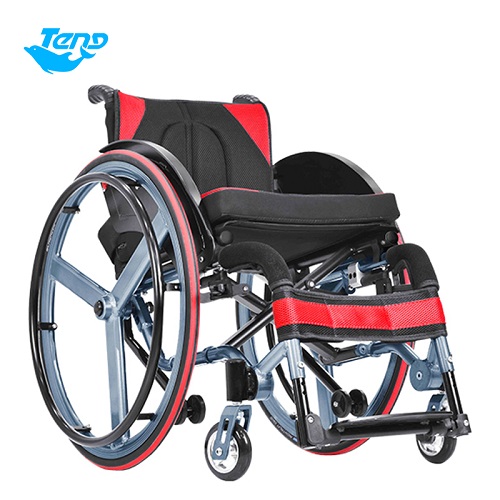 Sedie a rotelle da basket in genere presentano un'altezza del sedile più bassa per una migliore stabilità, angoli di campanatura a ruota più larga (di solito 15-24 gradi) per rotazione rapida e ruote di ricino anti-tip sul retro.